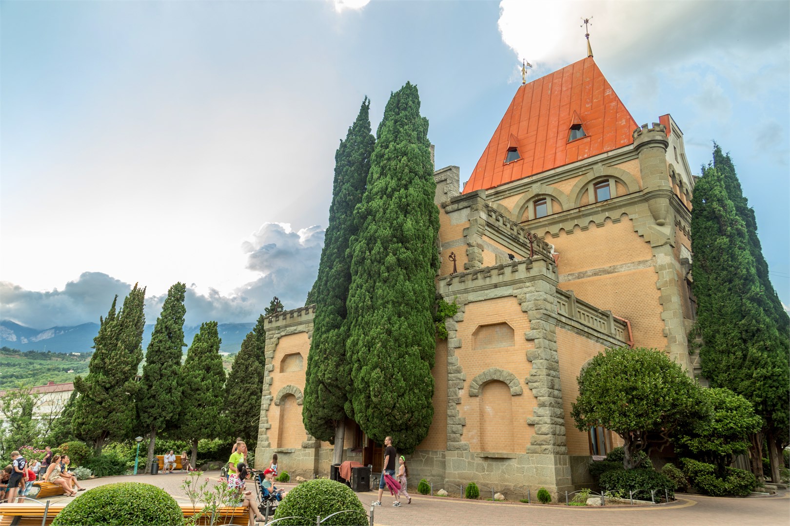 Отель «Сказка» расположен » на отрогах Крымских гор там, где они вплотную подступают к Черному морю, в живописном уголке города Алушта между центральн