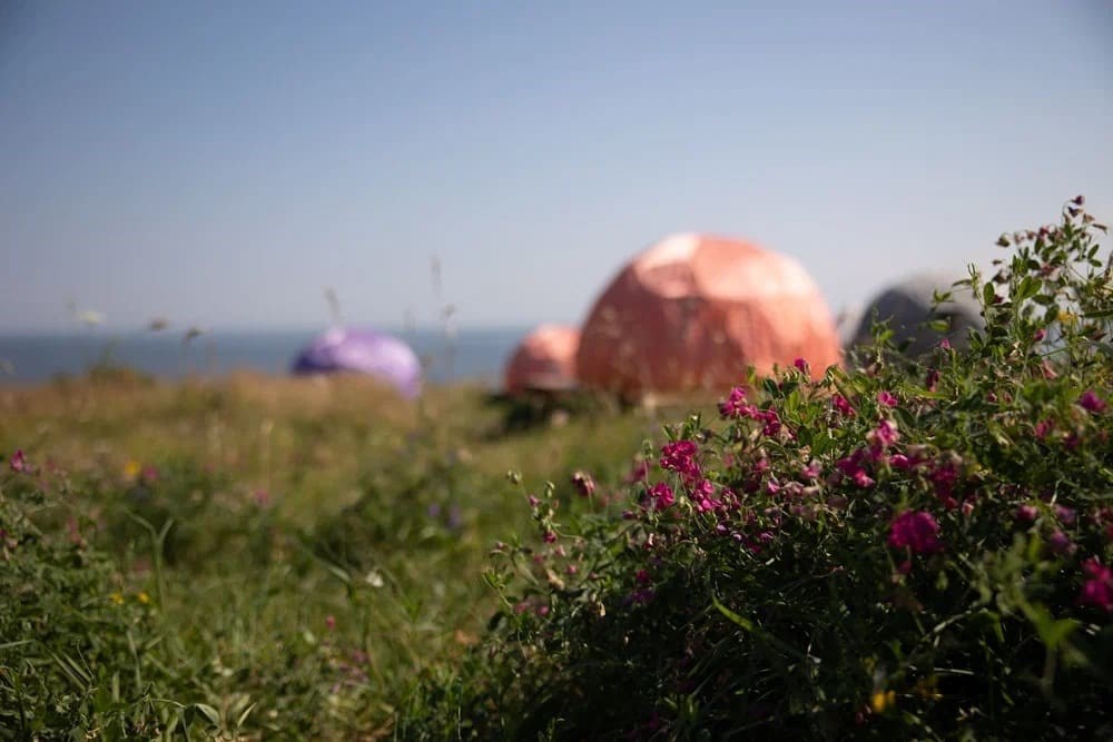 Расположившийся на живописном, высоком, правом берегу реки Волги, в окружении зелени и дикой природы, глэмпинг, с названием "Середина Волги" служит пр