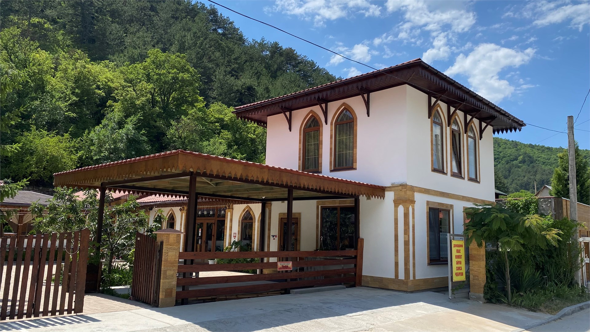 Живописное место с тёплой домашней атмосферой, видом на Мангуп-Кале и зоной для отдыха на свежем воздухе.