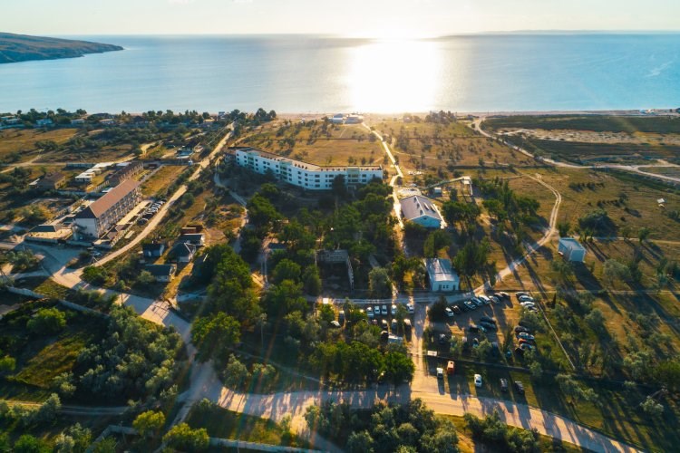 Парк-отель "РИО" расположен на берегу Азовского моря, в бухте Татарская Казантипского залива.